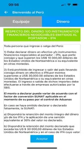- Money Declaration Form: In case you carry amounts exceeding ten thousand US dollars or its equivalent in national or other foreign currency, whether in money or negotiable monetary instruments in bearer form, upon entering or leaving Peru.