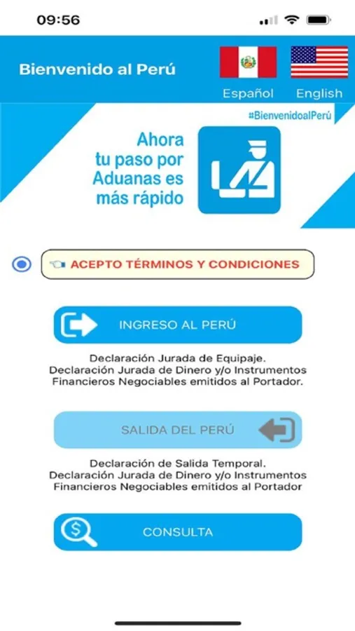 - “Declaración Jurada de Equipaje”: Sólo si porta equipaje afecto de tributos a su ingreso al Perú.