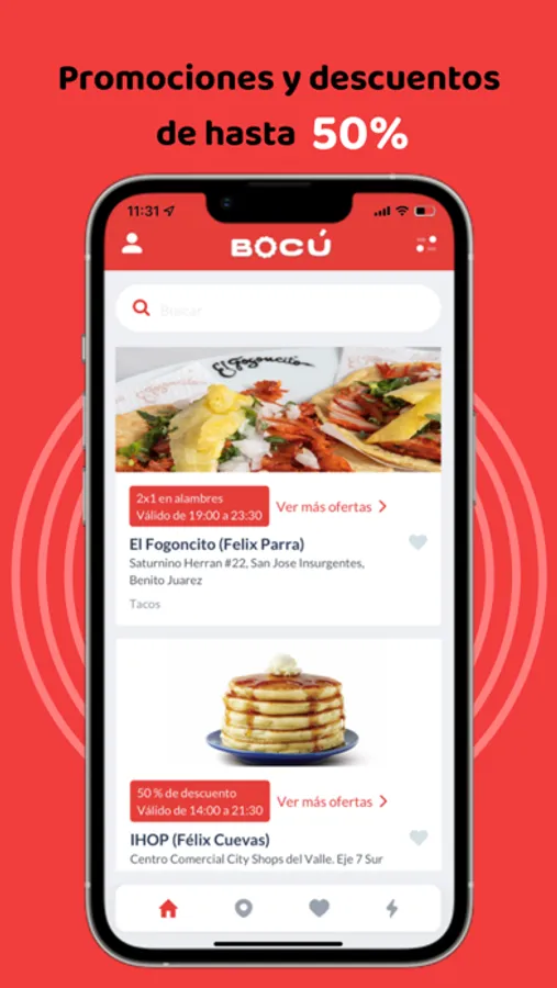 Bocú es una aplicación llena de descuentos y promociones increíbles en tus restaurantes favoritos. Reserva una oferta por medio de la app y sal a comer más seguido gastando menos. Para validar la oferta solo tienes que escanear el código QR del restaurante, no olvides hacerlo o recibirás penalizaciones a la tercera ocasión.