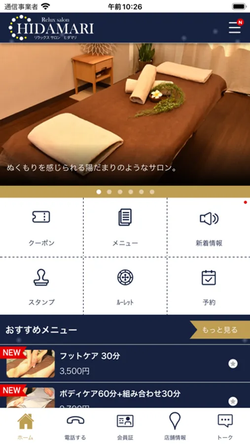 アプリを通して「リラックスサロン HIDAMARI」の新着情報やお得な情報をリアルタイムで受け取ることができます。