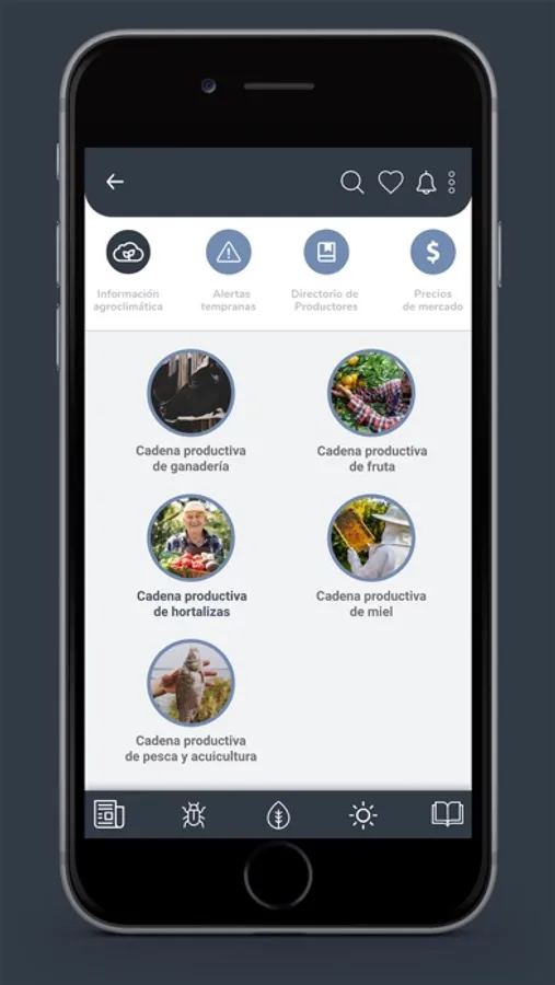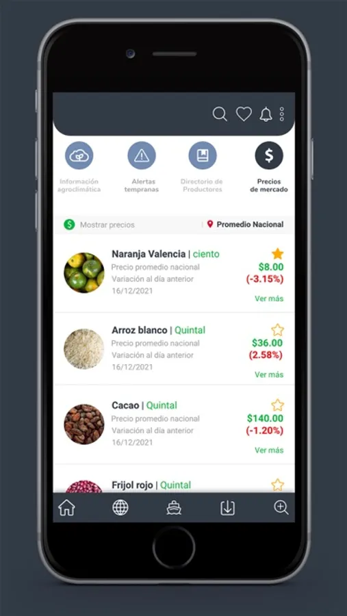 Mantente al día con la información agroclimática más importante de forma veraz y oportuna, recibe alertas tempranas sobre fenómenos naturales, consulta los precios de los mercados mayoristas en tiempo real y nuestro directorio de productores agropecuarios.
