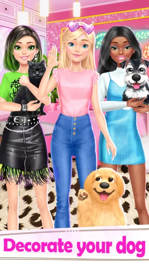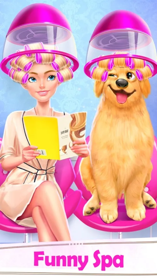 Experience the fun girl pet salon game! You can do manicures, cut nails, and make-up for each dog and girl.