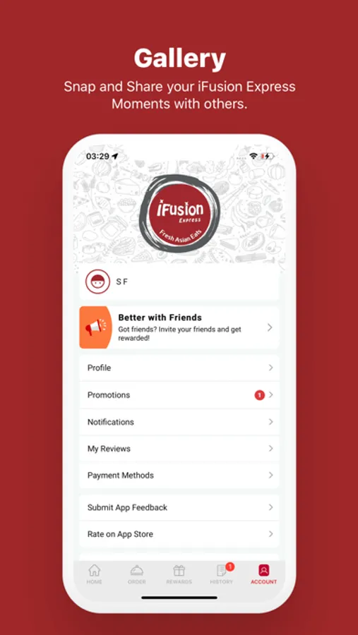 Check your Reward Balance, Order History and more.