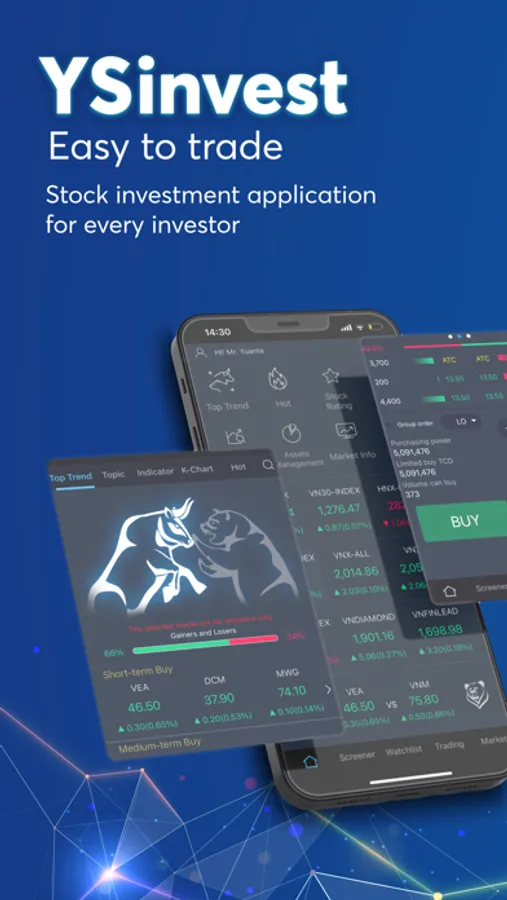 Created and developed by Yuanta Securities Co., Ltd and provide outstanding features based on advanced technology and understading requirements of the potential investors, YSinvest is a comfortable assistant, power that stock investors are looking for. With a simple user interface, easy to place orders and pick stocks, and a clear and quick information. YSinvest offers effective trading advantages in terms of information and time, helping investors to make quick, easy and accurate investment decisions.