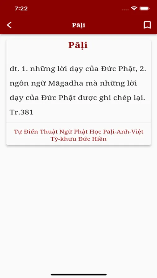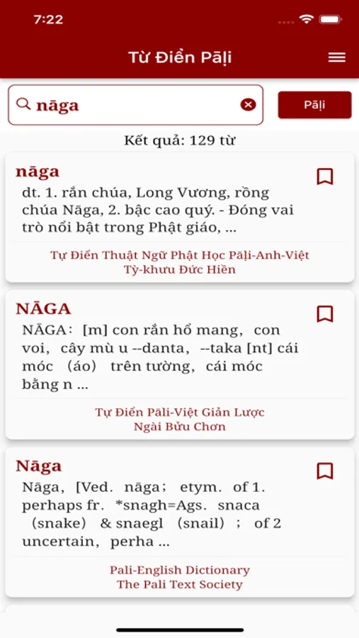 - Có thể tìm kiếm từ Pāḷi hoặc Việt không dấu.