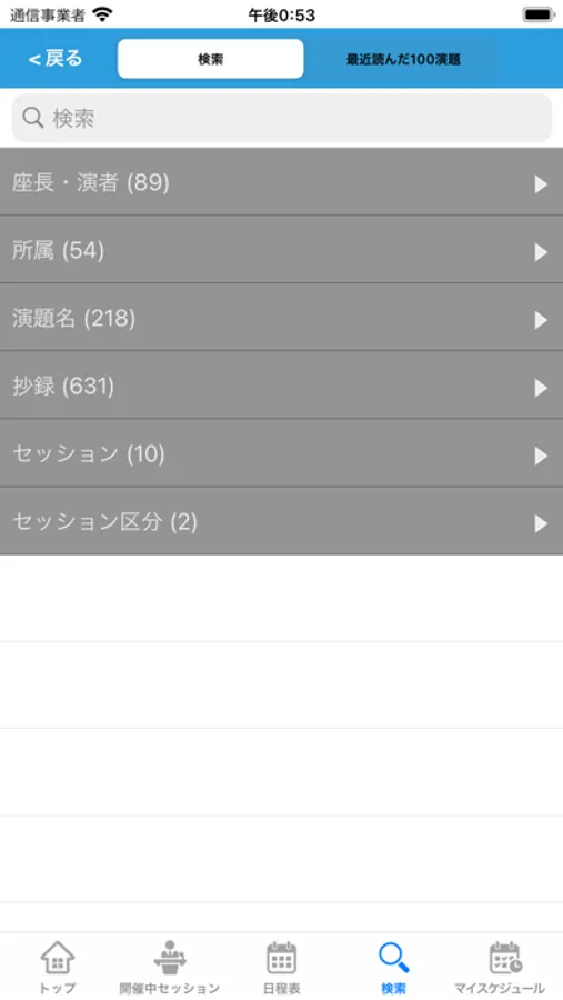 会期中、その時刻に発表されているセッションが一覧表示します。
