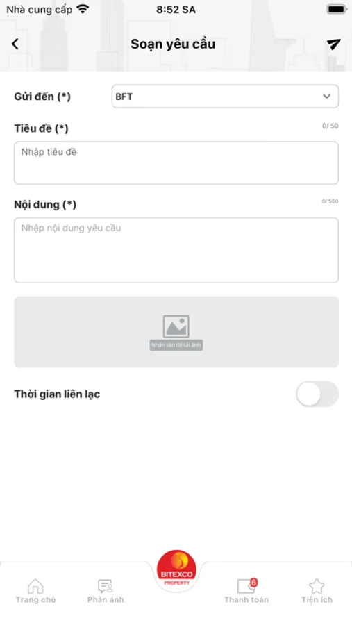 - Dễ dàng gửi yêu cầu tới Ban QLTN: Trực tiếp gửi yêu cầu, báo lỗi, sự cố về dịch vụ và chất lượng tòa nhà.