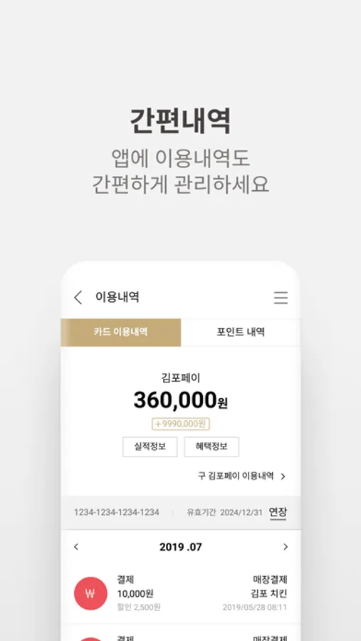 - 앱에서 편리하게 카드 충전 및 이용 내역 조회