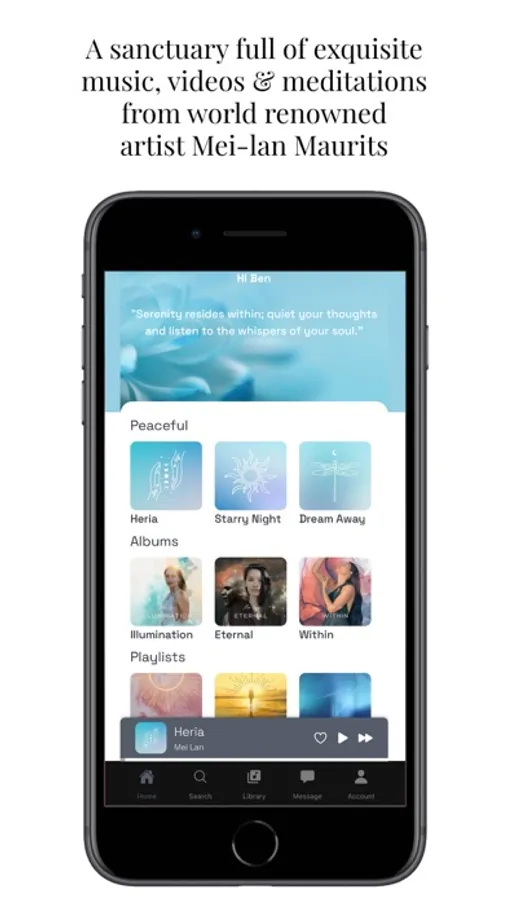 The intention of this Music Sanctuary is to help you reach a higher level of consciousness to live a happier, more authentic life and embody your soul purpose. You'll have an Immediate connection to all of Mei-lan’s creations, access to new songs and meditations, over 3,000 minutes of music, receive early access to all new launches and music, explore playlists of music you’ve never heard before, and specially curated playlists to balance every part of your being.