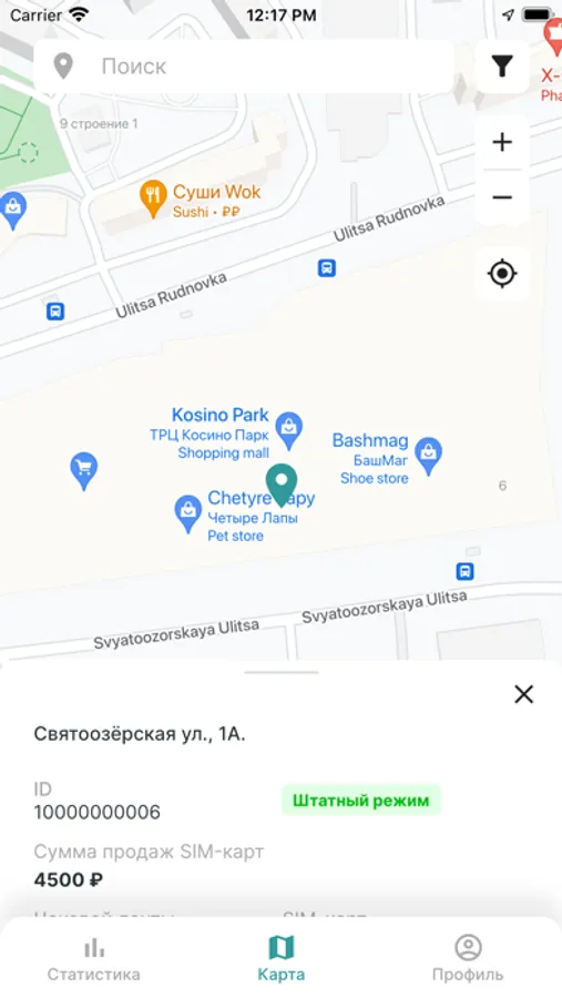 Приложение акционера предоставляет актуальные статистические данные по продажам SIM-карт с помощью терминалов системы SIMPAD. Пользователи приложения имеют возможности мониторинга финансовых и других показателей системы.