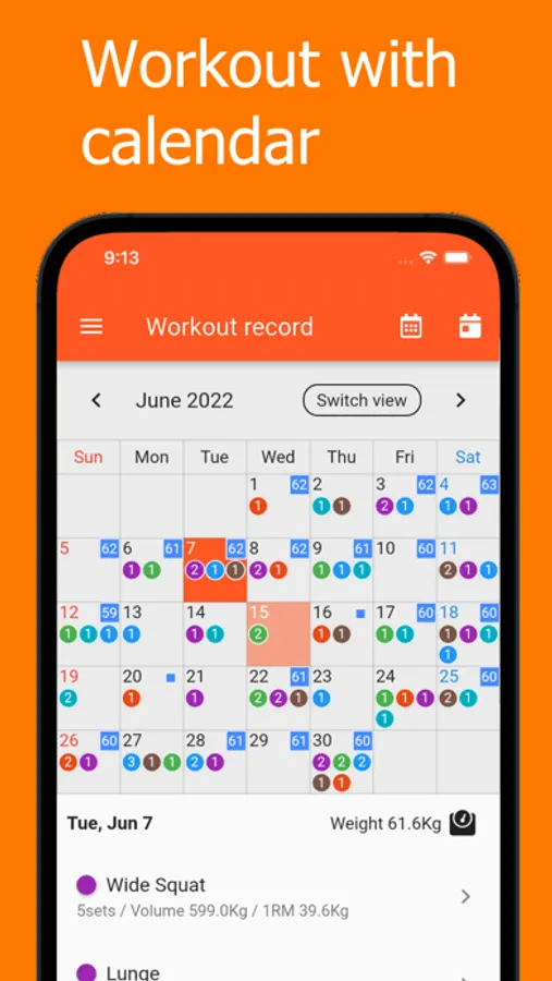 In KINNIK, you can see at a glance on the first calendar screen which days you have trained. You can also tap a date on the calendar to see your training for that day.