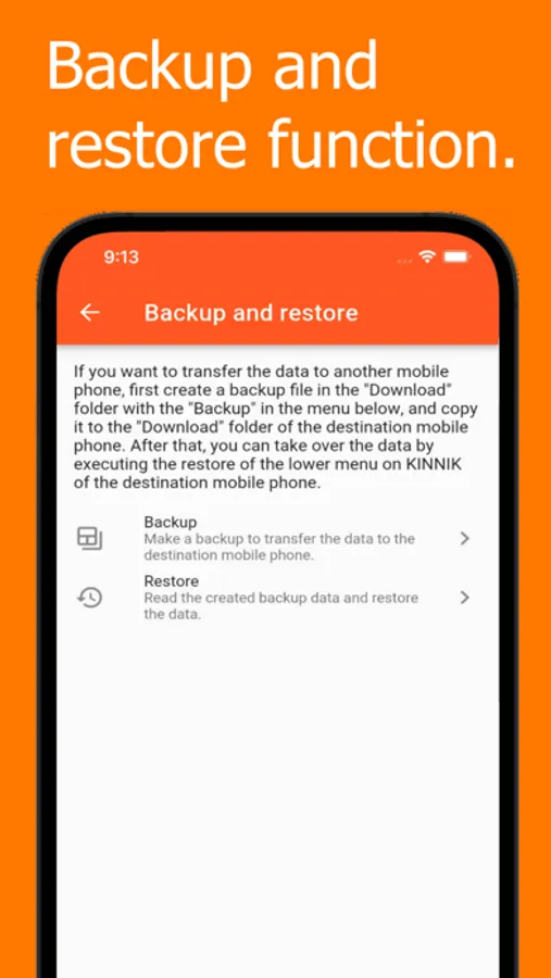 KINNIK has a backup and restore function so that you can transfer your training data to a new phone when you replace your phone.