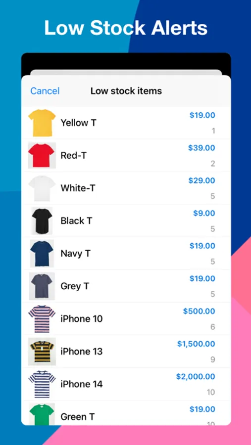 - Low stock alerts are also available