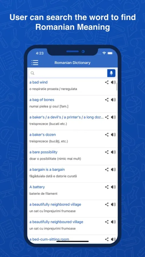 4- In our Romanian dictionary and translator app, users can search over 200000+ words to convert English to Romanian and Romanian to English.