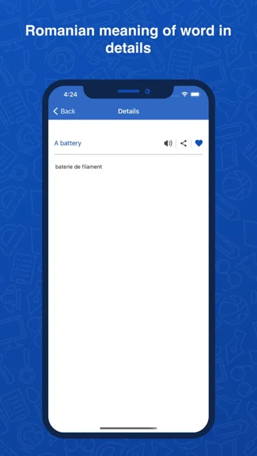 7- You can create a favourite list in our app of the translated words and can share it with anyone in their English and Romanian meaning.