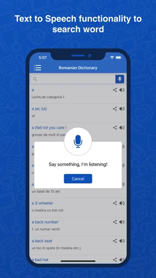 2- In Romanian Dictionary: Translator app, Users can search the word by their voice and read word meaning in both Romanian and English.