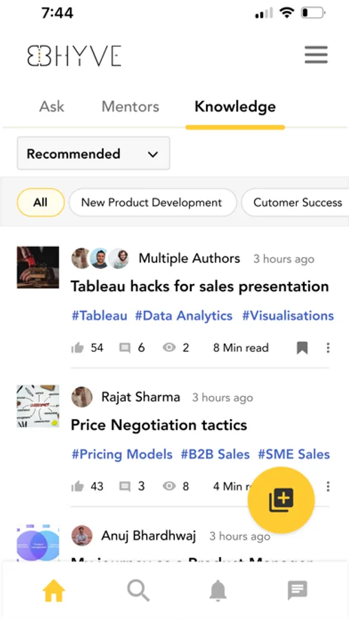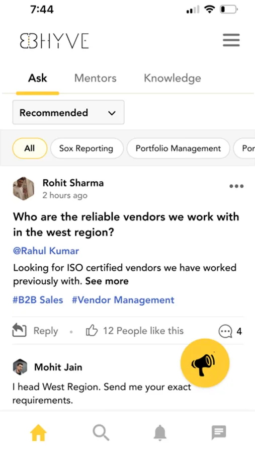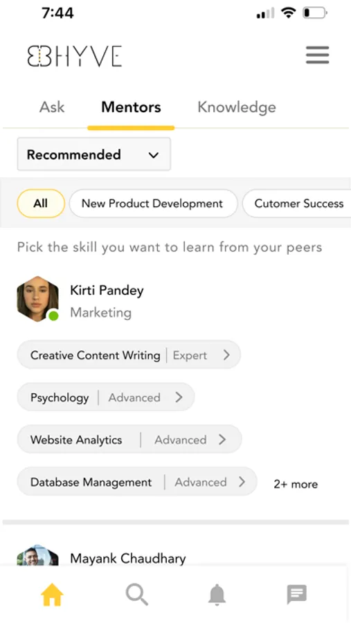As companies grow and embrace a hybrid workstyle, a lot of employees time is wasted looking for information. There is a 90% chance that the information an employee wants is sitting in the experience, diaries and minds of their colleagues. But finding these experts, interacting with them is impossible, or just time-consuming. BHyve enables employees to seek and share knowledge with colleagues for rewards. Using BHyve, employees can save up to 8 hours a week, by searching for information using a couple of skills, meeting mentors, reading tacit knowledge and asking the right questions. BHyve makes employees more informed and companies more approachable!