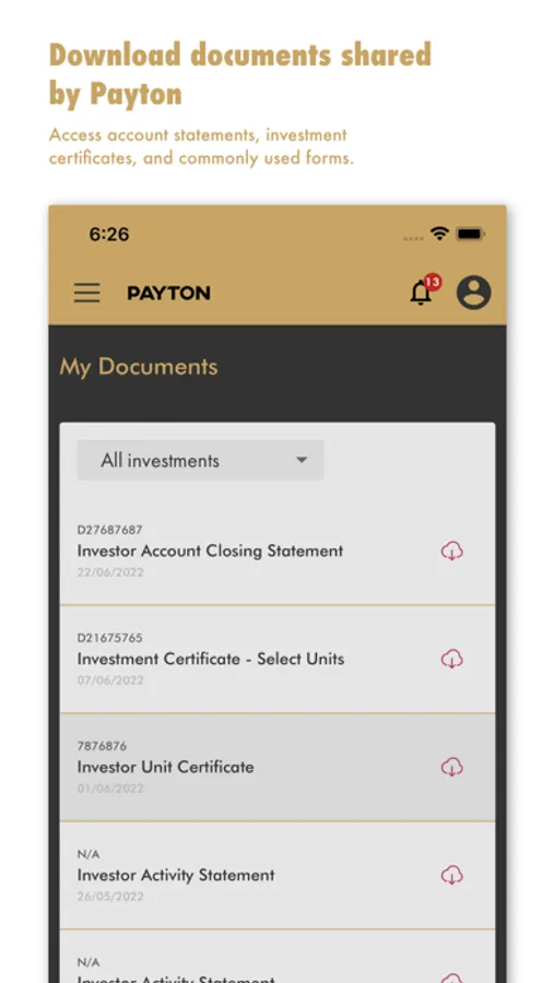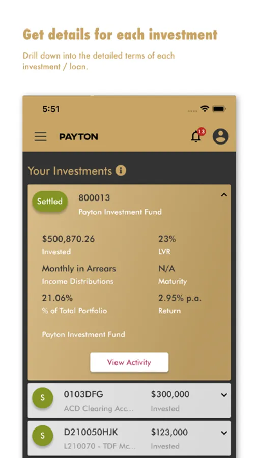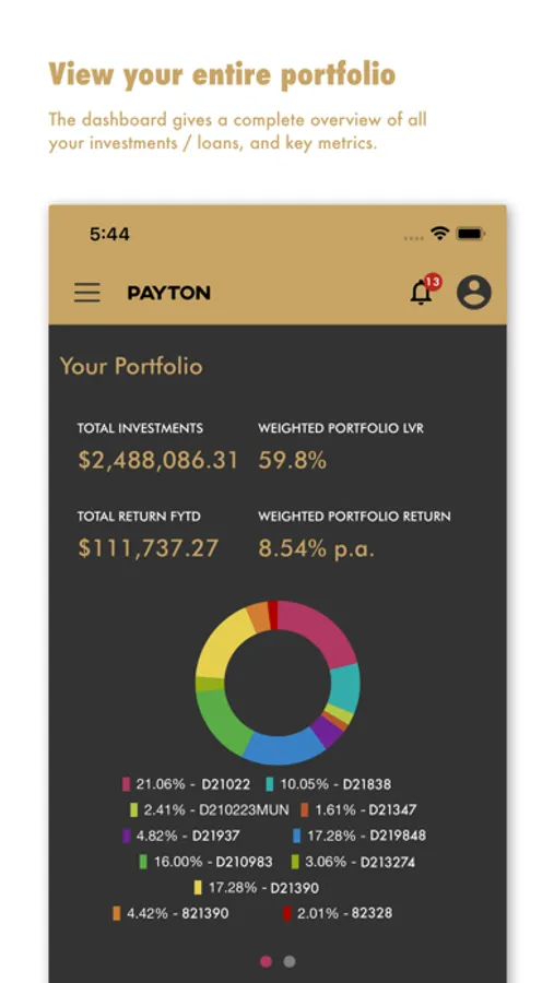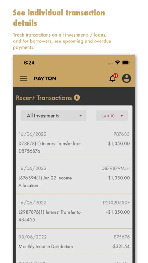 The Payton App provides clients with secure access to their current and historical investment and borrowing portfolios, and real-time transaction details. It gives up-to-date performance information and allows clients to download account statements and forms. Investors can view and express interest in current investment opportunities. Borrowers can also view any upcoming or overdue payments.