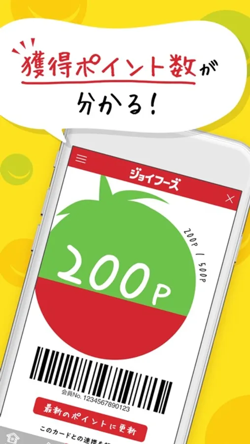 また、カードの代わりにアプリに表示されたバーコードを会計時にレジでご提示いただけます。
