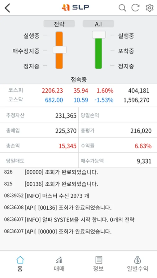 1.원클릭 자동매매 - AI모드를 실행시켜 놓으시면 인공지능이 종목선정부터 매매까지 자동으로실행됩니다.