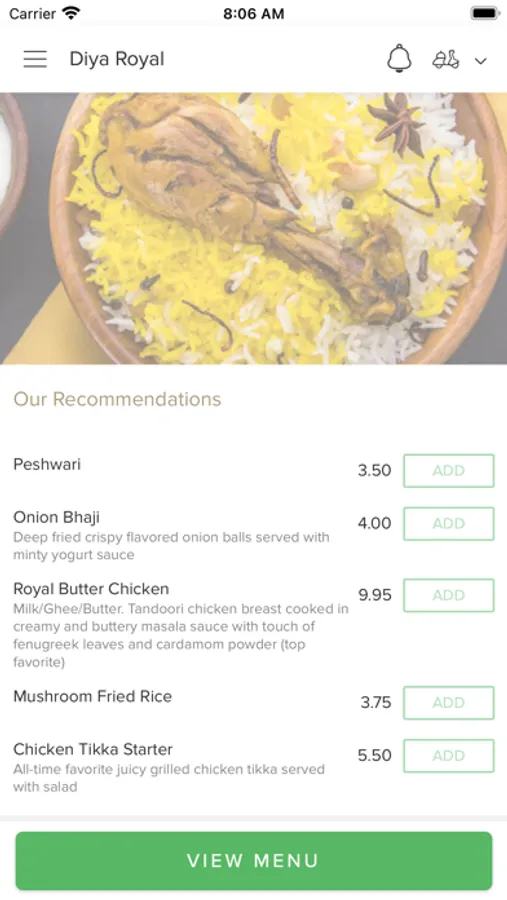 Order food online from one of the finest takeaways in town. We are proud to serve the surrounding area. Here at Diya Royal , we serve a variety of food such as Biryani, Tandoori, Balti Dishes, kebabs and more.