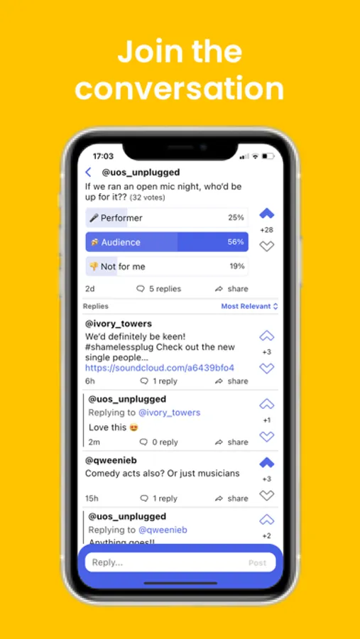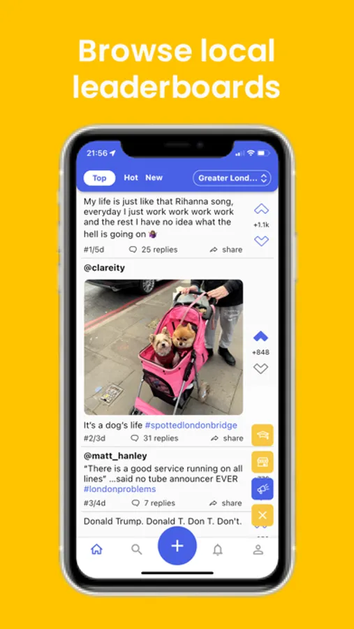 Browse new, top or trending nearby content. Post, reply, share and search. Give out ‘Karma’ and vote on polls. Discover what’s going on in your local area. Join the conversation and make your voice heard.