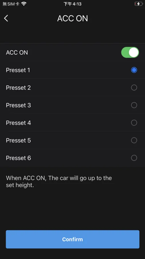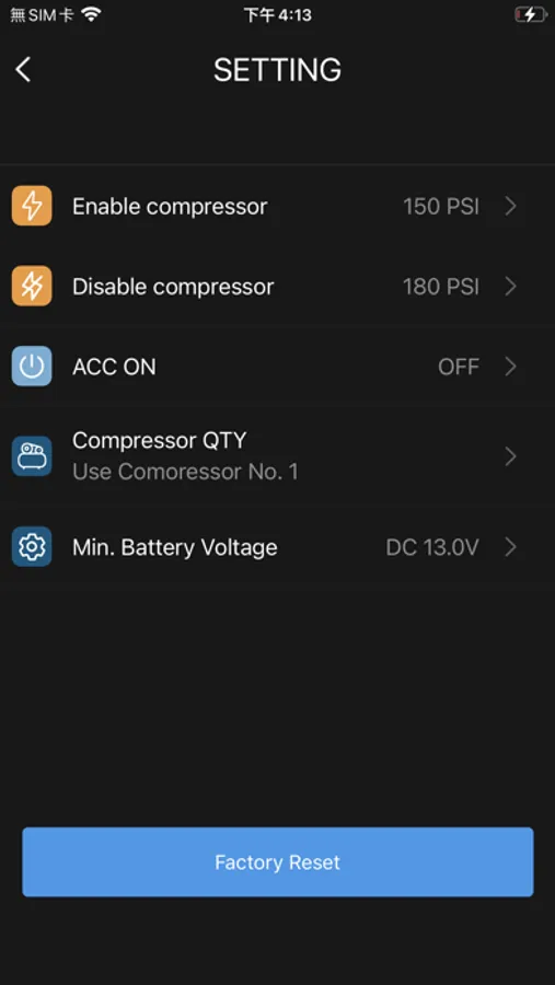 Users can set up maximum 6 sets of ride height memories and adjust compressor setting through this APP.