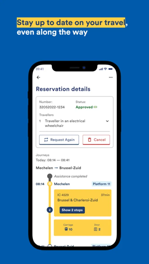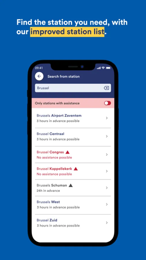 With the SNCB ASSIST app, travellers with limited mobility can plan their own trip, request targeted assistance, monitor their trip in real time and contact the SNCB contact center in an easy way.