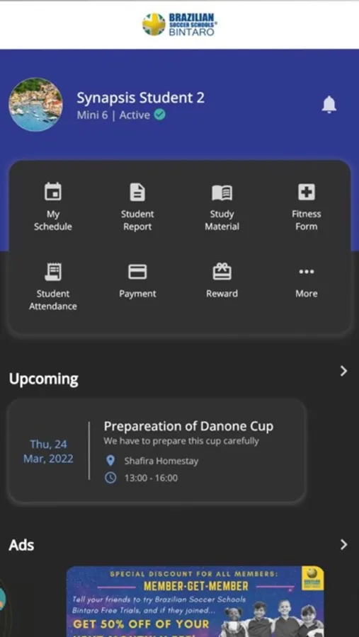 Aplikasi BSS Bintaro ini adalah sarana berbagi informasi dan juga learning management system (LMS) bagi para member BSS Bintaro untuk mendapatkan lebih banyak informasi seputar perkembangan anak dan juga mengenai materi latihan sepak bola BSS Bintaro.