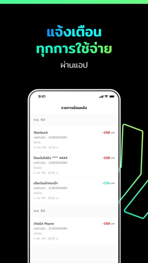 • แจ้งเตือนทุกการใช้จ่าย ผ่านแอป