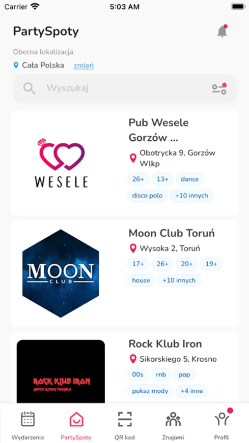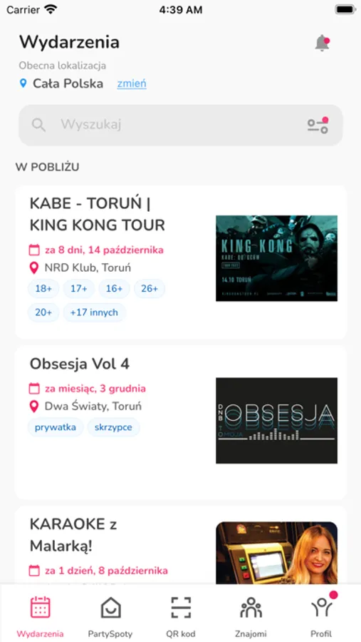 PartyFinder is an innovative, coherent concept that allows you to easily reach entertainment events in a selected location and discover new places on the map of the country.