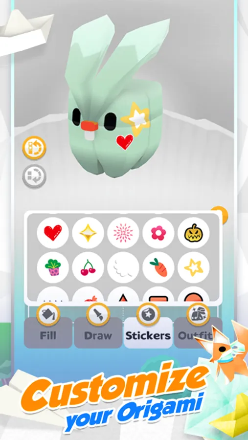 - Choose the paper, paint and add stickers to each origami animal with our robust customization system