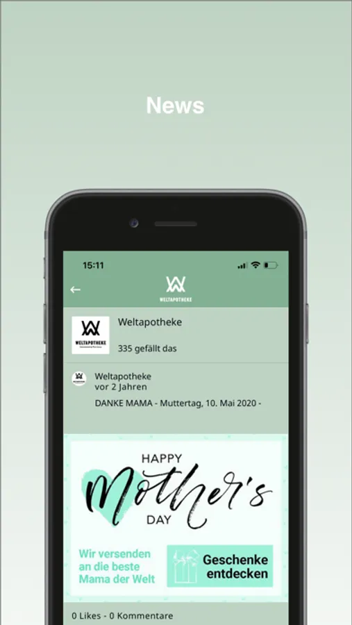 WELTAPOTHEKE-App von hello again ist eine Kundenbindungs-App, die für alle Smartphones verfügbar ist.