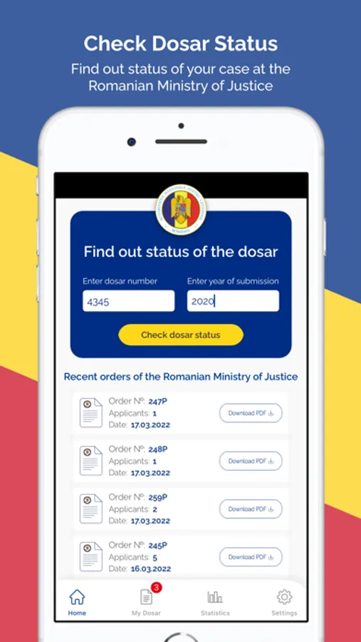 Romania Dosar will help you track the status of your application (dosar) at the Ministry of Justice of Romania.