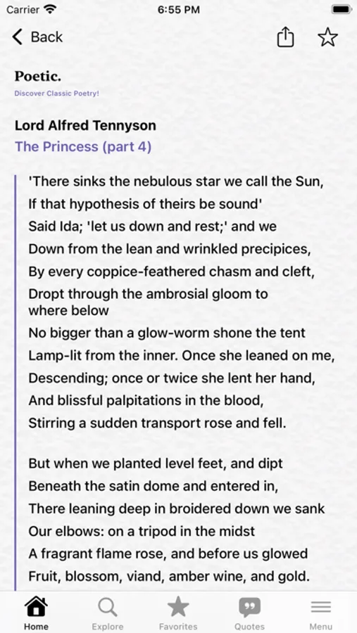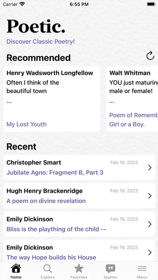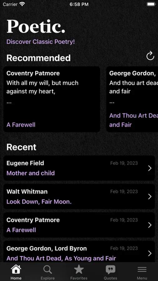 Poetic is a classic poetry reader. Enjoy thousands of poems from the greatest English poets.