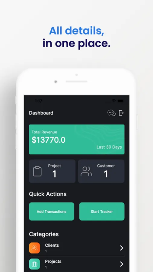 Work on Upwork, Fiverr, Freelancer, Toptal or any other freelancing platform - doesn’t matter! Grow your freelance business faster and manage tasks on-the-go. Handle your incomes & expenses via our transaction management, and do client relationship management and project management anytime and anywhere.