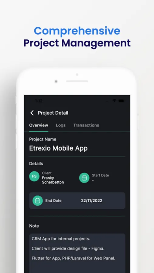 You can manage your clients, transactions, notes and projects for work management tailored to your needs as a freelancer or small business team.
