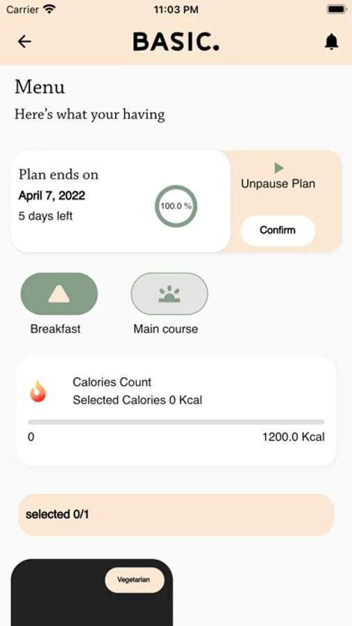 Meal plans customized for you. If your planning to loose weight, gain muscle or you just want a healthy life style, basic is the right place. The app will make things easier from choosing your meals to counting your daily macros, diet is not only about weight loss, it's about eating healthy, keep your energy level high and provide your body with the healthy nutrients. We are here to make your journey smooth, easy and super tasty.