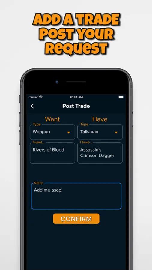 Weapons. Talisman, Armor sets, Runes are available to list in the app.