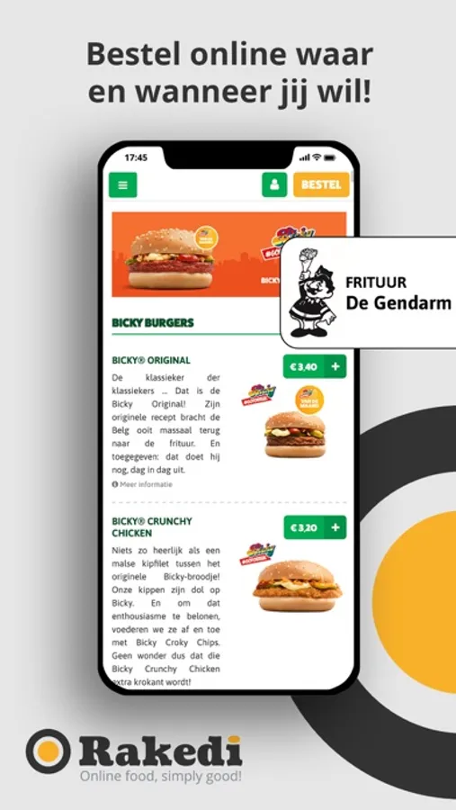 Bij Frituur De Gendarm hebben we heerlijke frietjes en hamburgers. Bestel online via onze app.