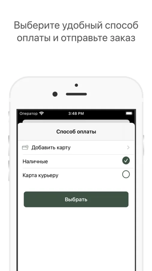 Укажите время, когда хотите прийти за своим заказом или выберите доставку с указанием времени и адреса доставки.