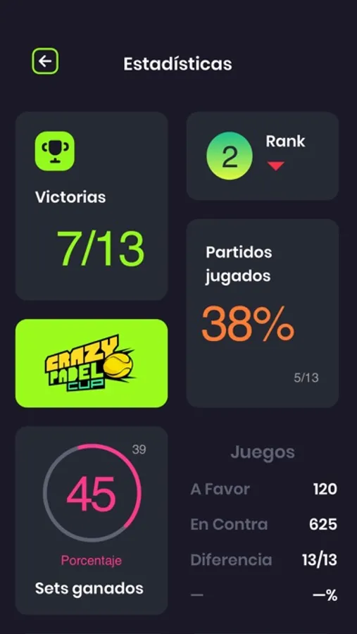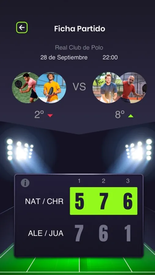 ESTADÍSTICAS - Aquí podrás ver el resumen de cómo lo estáis haciendo tanto tú y tu pareja como tus rivales. ¡Let's play hard!