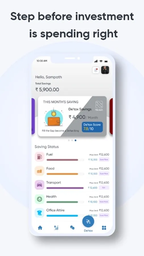 Why Ncash? Our Neo Banking application helps employees to plan, spend and earn rebates through our prepaid card named “De'tax card”. De'tax Card is an “All In ONE” employee benefit Card. New age benefits like Wellness, Learning and Travel are included in this card. The De'tax card also helps small & medium businesses to automate their employee expense management.