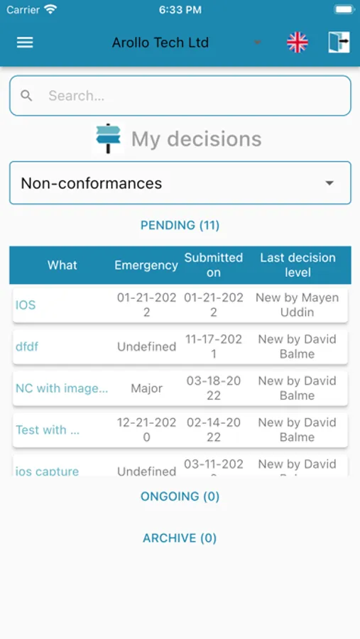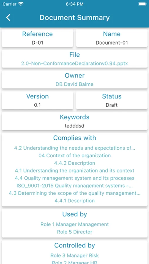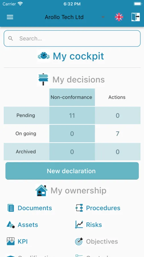 - Declarations can be made by users with defined roles and preceded for non-conformances as Treatments