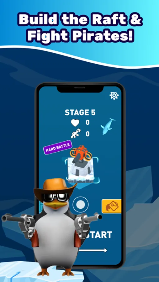 Collect raft parts floating in the sea of this raft wars game. once you collect them, they become a part of your raft where your penguin sea army can fight with other! You can also collect artillery, and machine gun and various fighting items that will make your penguin army more powerful, so you can defeat the pirate boss with your raft in such easy way.