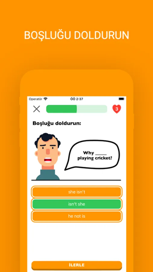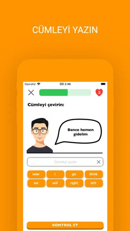 - Tercüman kategorisinde doğru bir şekilde cümle kurmayı öğrenin! Size sunulan cümlelerin karşılığını yazarak öğreniminize devam edin. Merak etmeyin burada size ufak tefek ipuçları sunulacak.