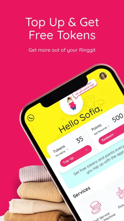 dobiQueen app allows you to get extra free tokens as you top up - enjoy more value as you wash with us, and get reward points along the way! All you need to do is top up your account, then scan the QR code on the token machine within our outlets to dispense any amount of tokens you need at the machine!