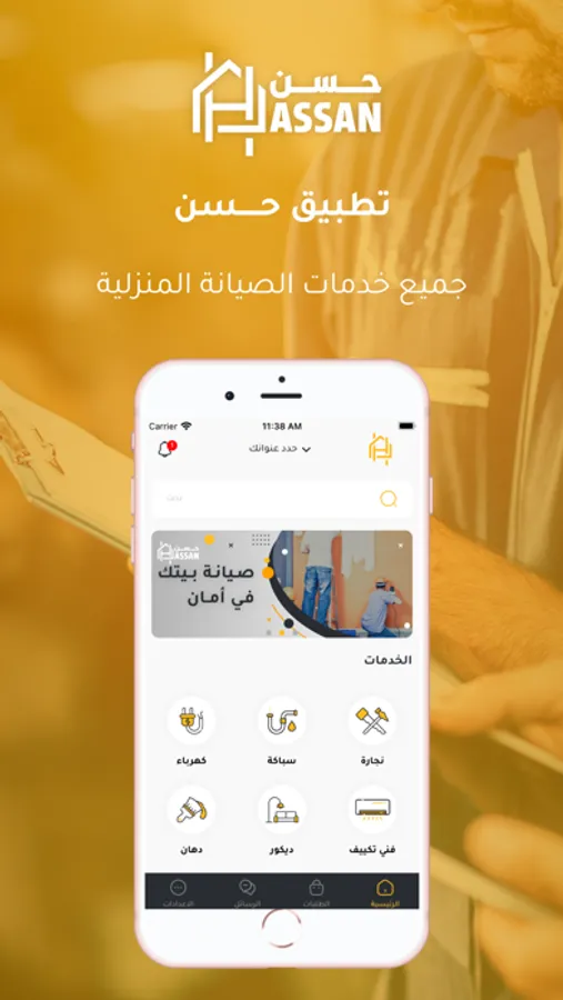تطبيق حسن المستخدم متخصص في تقديم خدمات الصيانة والاعمال المنزلية عند مكان العميل ويتم العمل بأيدي فنيين مختصيين