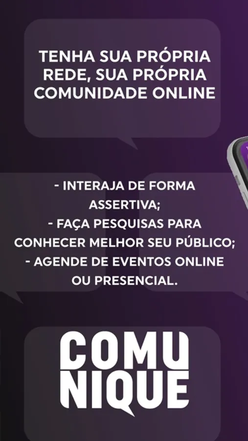 Aqui no Comunique você interage com seu público e monta sua COMUNICADE EXCLUSIVA e a sua rede social sem concorrentes!