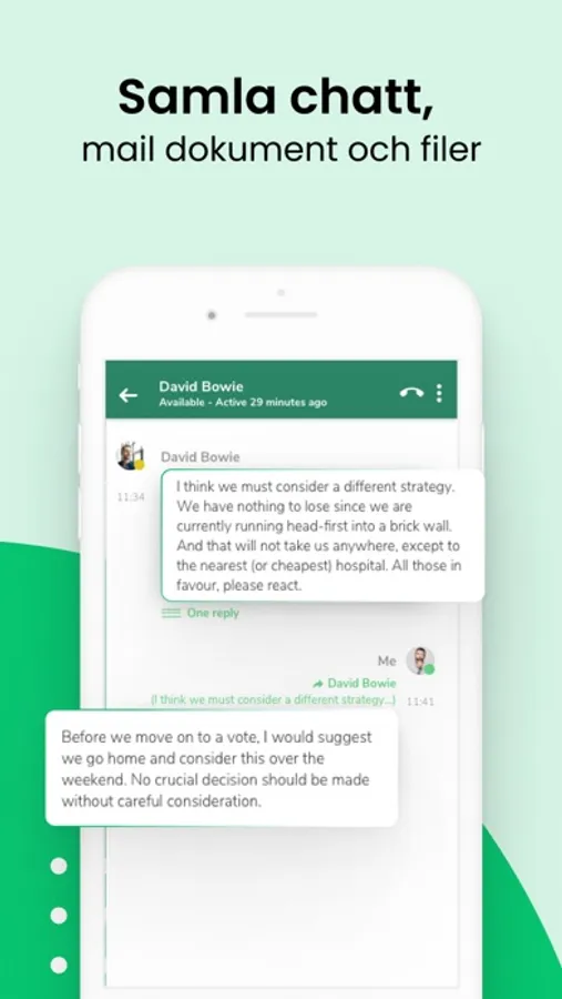 • Chatt–Knyt ihop teamet och chatta direkt med kollegor, skapa kanaler för olika avdelningar eller projekt